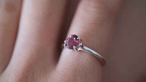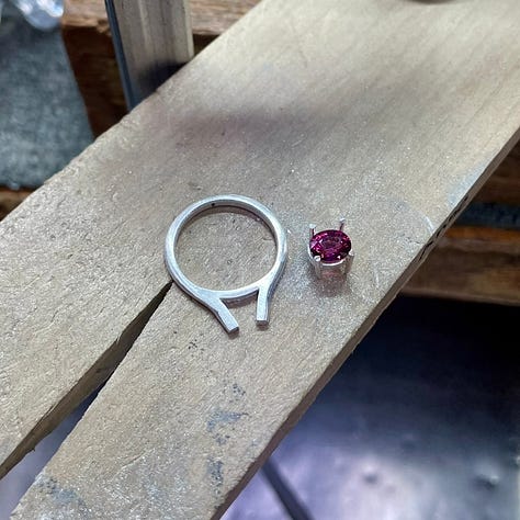 Looking down at the maroon stone on my finger these past few days has made me so happy. I finally finished a cathedral ring that has pushed me for weeks. It’s the most complex fully fabricated piece I’ve made to date and it left me feeling both more capable and more energized about what I can take on next.