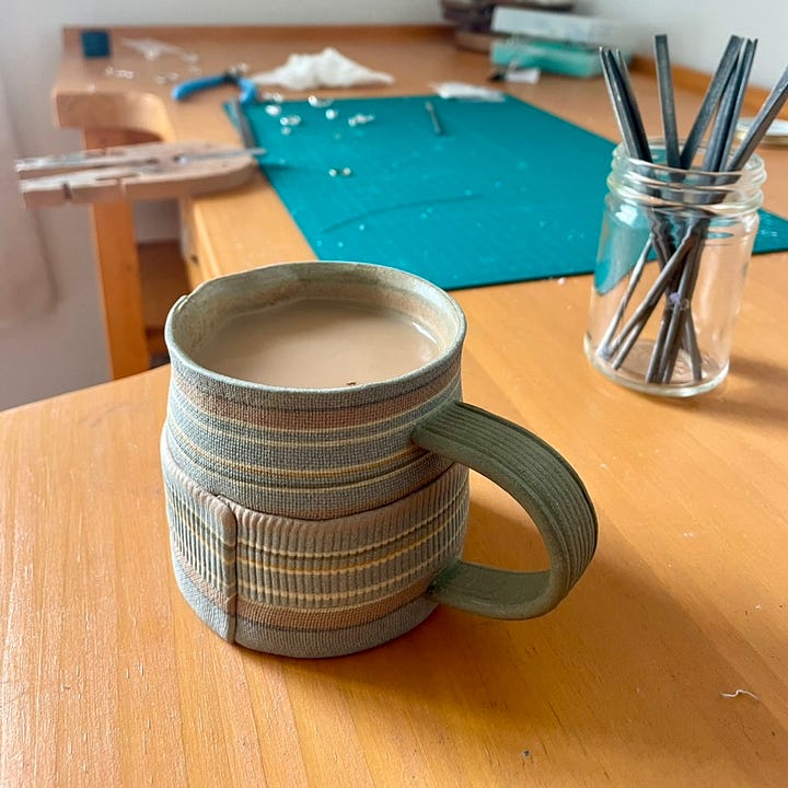I finished my first bezel setting practice with a random stone that Maya from ileava jewelry kindly gave me from her studio. I had two main takeaways from this attempt: 1) the metal needs to be very thin and 2) to really focus on cleaning up the top of the metal before closing it over the stone. I’m going to try again this week and keep practicing.