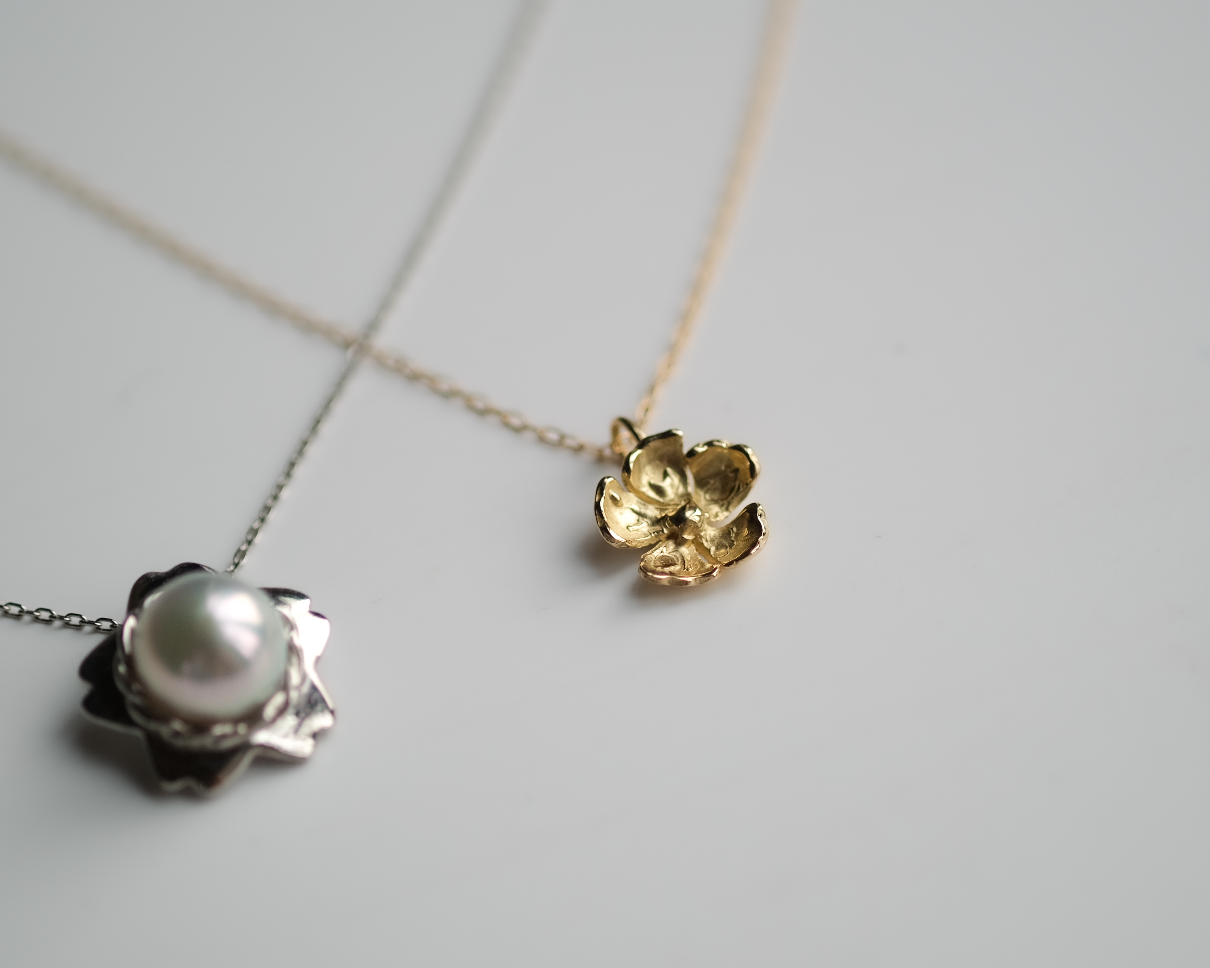 I spent the start of 2026 in the mountains of Japan, a landscape of frozen farmland and slow walks along the river. With long stretches of days at the bench, I finally finished two floral pendants I began back in autumn: a platinum sakura set with a single Akoya pearl, and a sculpted gold flower.