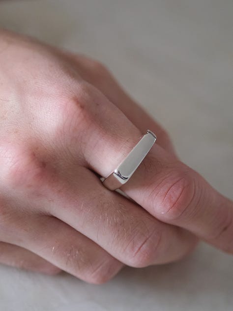 I recently completed my first two men’s rings. One is a slightly asymmetric take on a rectangular signet, and the other an inverse-domed band. In photos I find myself drawn more to the signet, but in person I prefer the band.