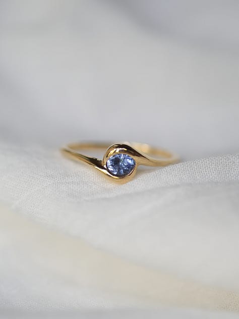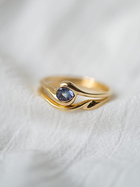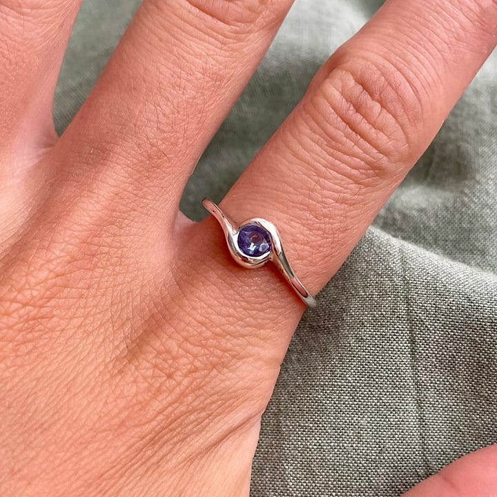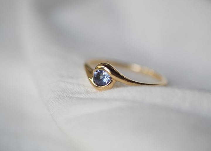 The Where Waters Meet Ring was both a technical challenge and a leap of faith for me. The 4mm tanzanite is moderate in size, but I felt nervous setting it. Stone setting is still very much a learning area for me and one I plan to keep practicing (definitely not always in 18 karat gold, where the stakes feel so high!). For smaller stones, I’m fond of semi-bezel settings. They have a clean, modern look and fit seamlessly into many designs.