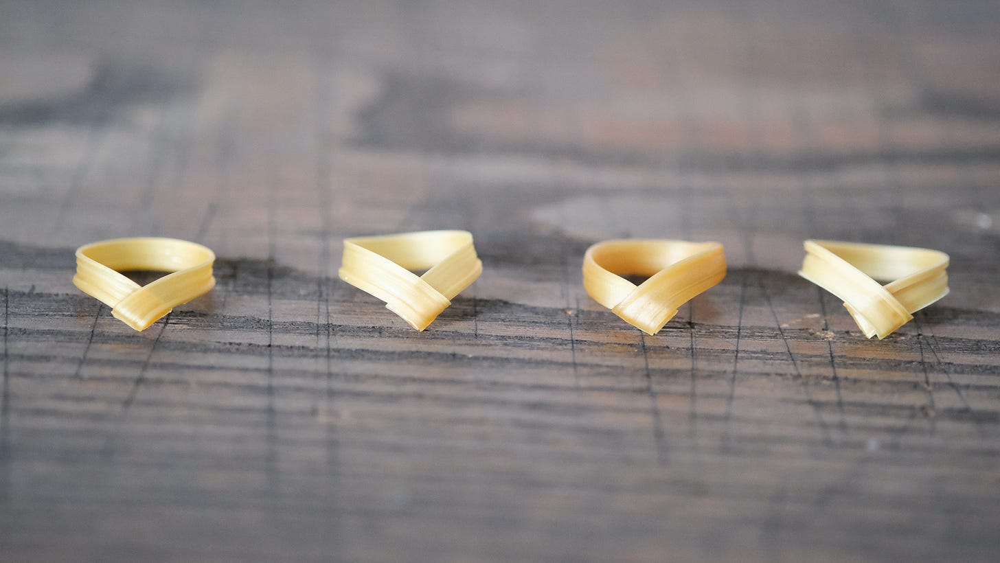 I want to get the best ribboning and V-shape possible so I’ve made quite a few test models. From the many I made in wax, I chose the best two to cast in silver. I’ll then clean up the design in metal and see if I like it enough to use as my final version.
